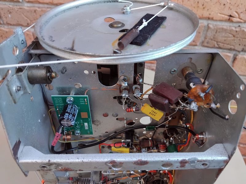 Fig. 15G. FA-5 module fitted to Kriesler (model 11-7) radio. Inductive tap and a short piece of a coaxial cable RG-174 with RCA plug are used.